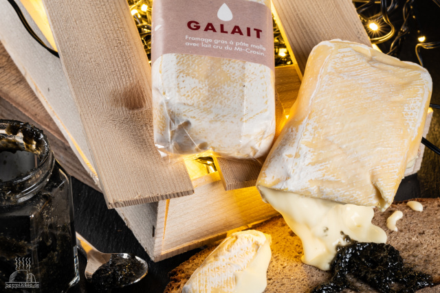 "Le Galait" ist ein der Käserin Agnès Beroud, der in St-Imier (Berner Jura) in exklusiven Mengen (1-2 mal pro Woche), hergestellt wird. So wie er ausschaut, schmeckt er auch: perfekt gereift! Die Rohmilch für diesen herrlichen Käse kommt vom Mont Crosin (> 1000 M.ü.M), ist silofrei und Bergmilch zertifiziert.